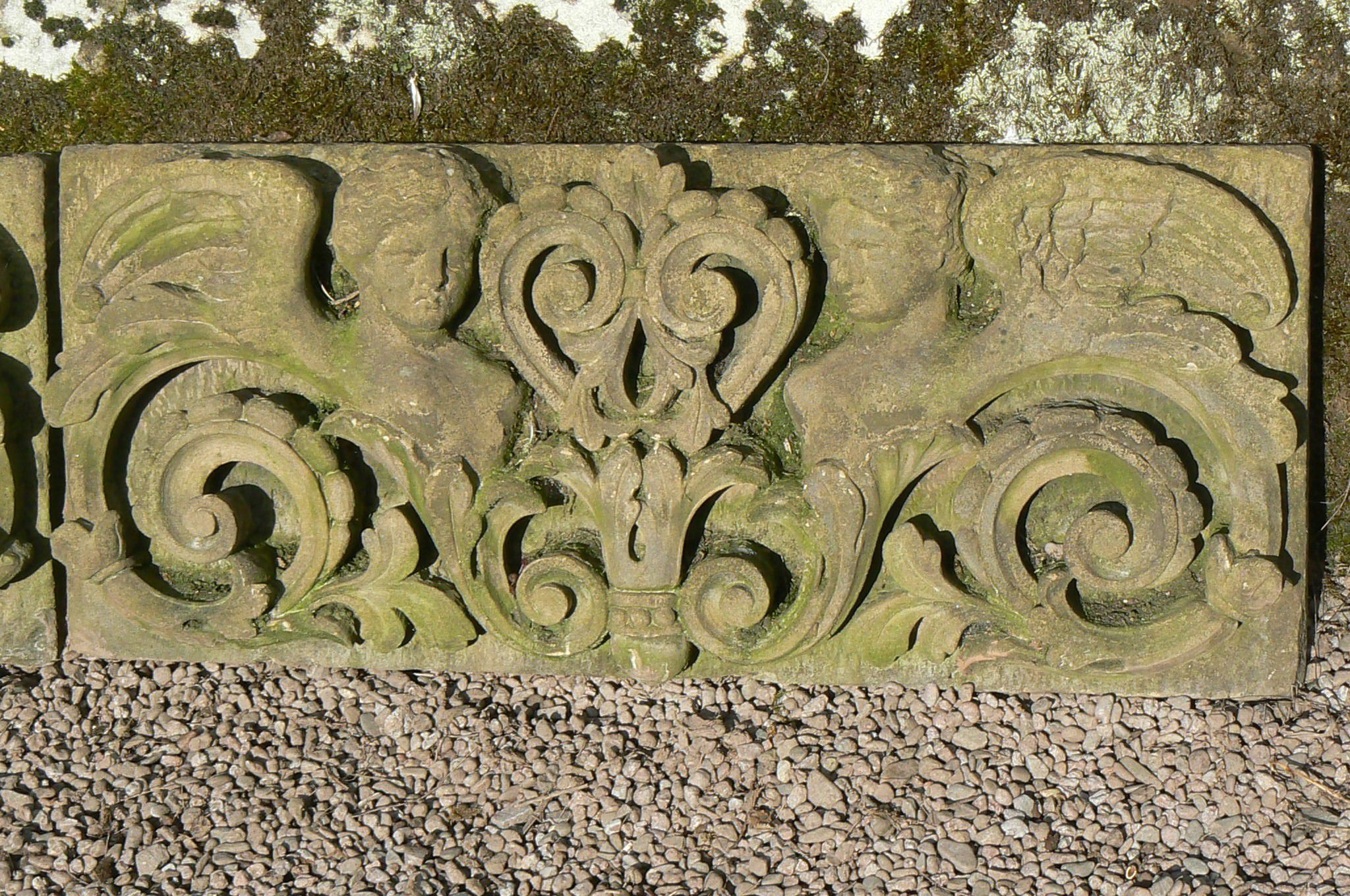 A pair of unusual sandstone panels of rectangular shape, each relief carved with a pair of winged angels. These panels were salvaged from a demolished chapel in West Yorkshire.