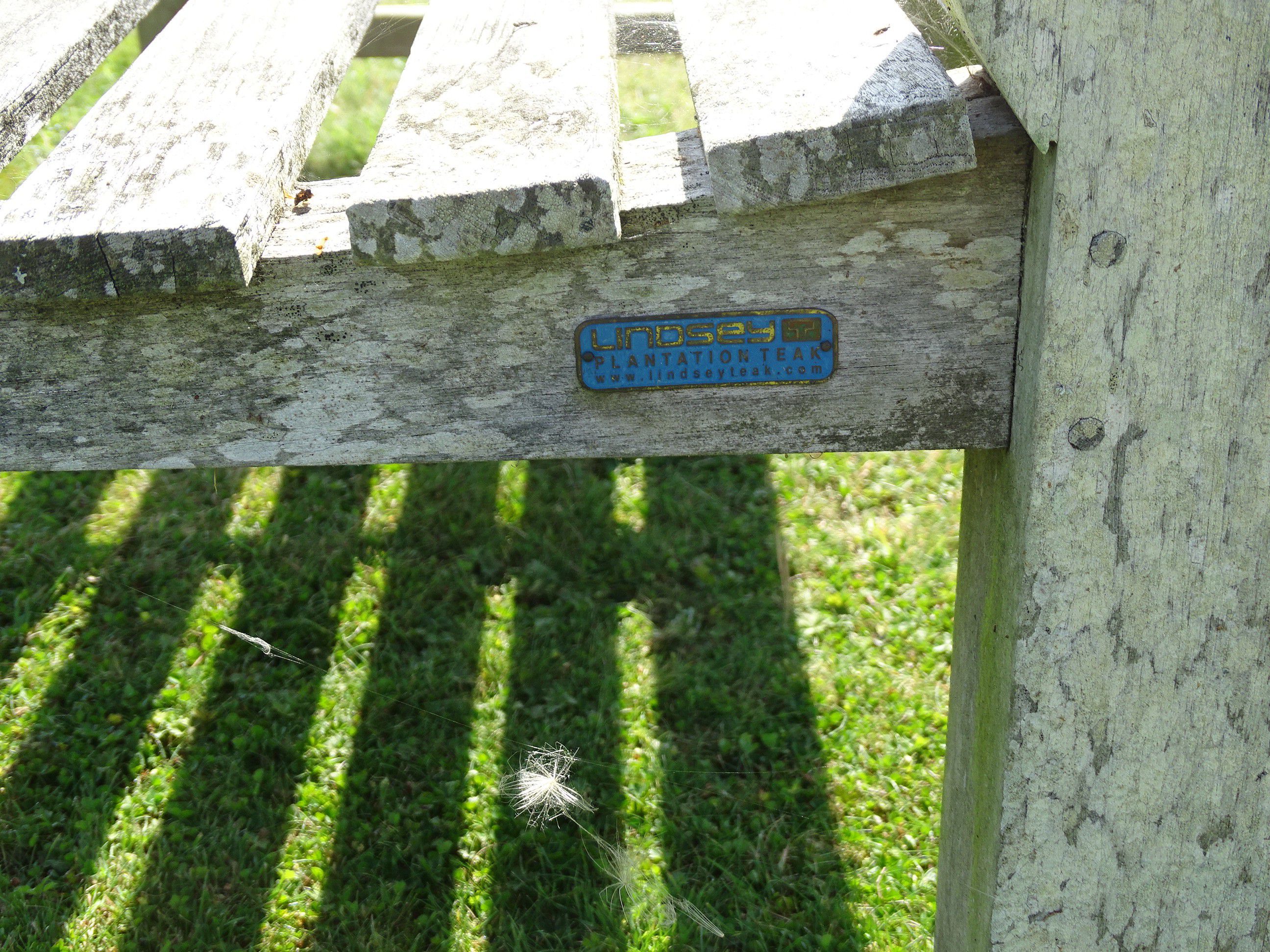 A good quality weathered teak garden bench made from large section teak timber. As well as its pleasingly robust construction, this bench has a deeper seat than most (front to back depth, 24"). There is a rectangular plaque on one end for Lindsey Plantation Teak.