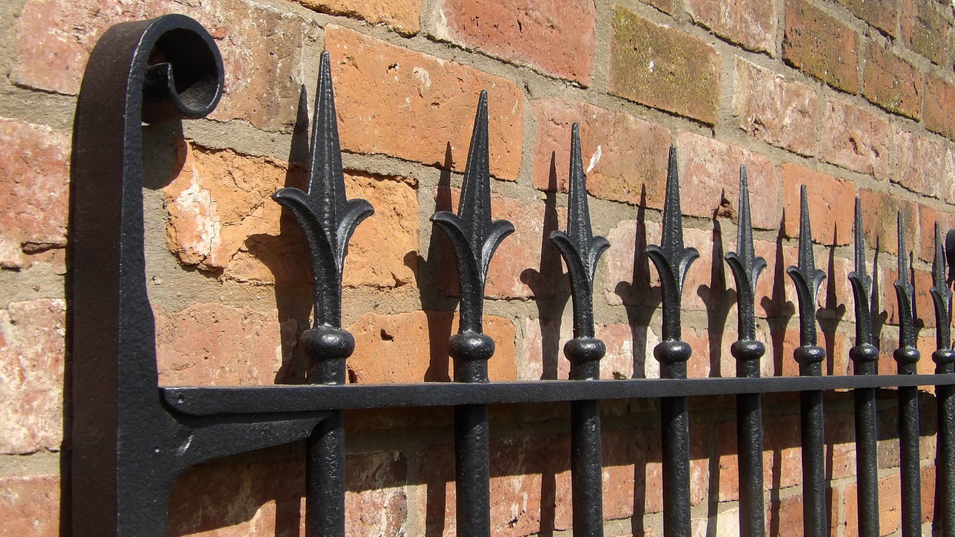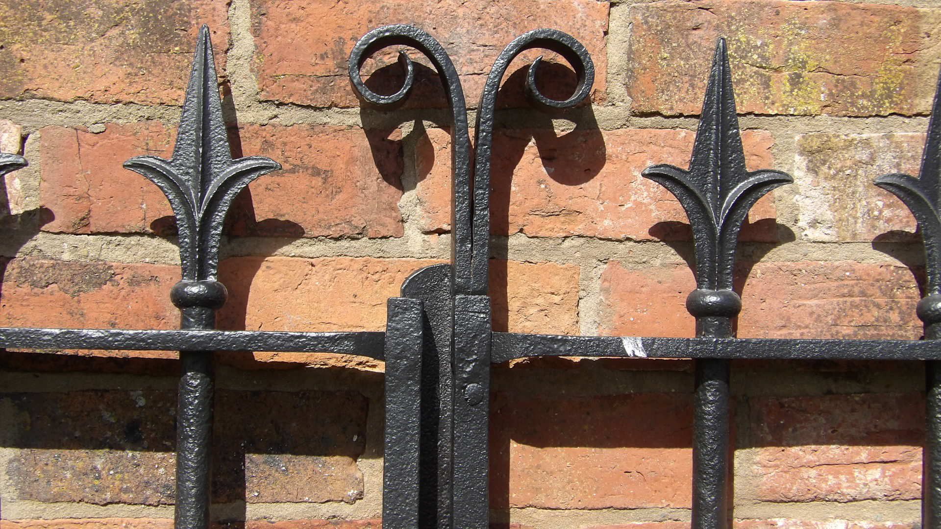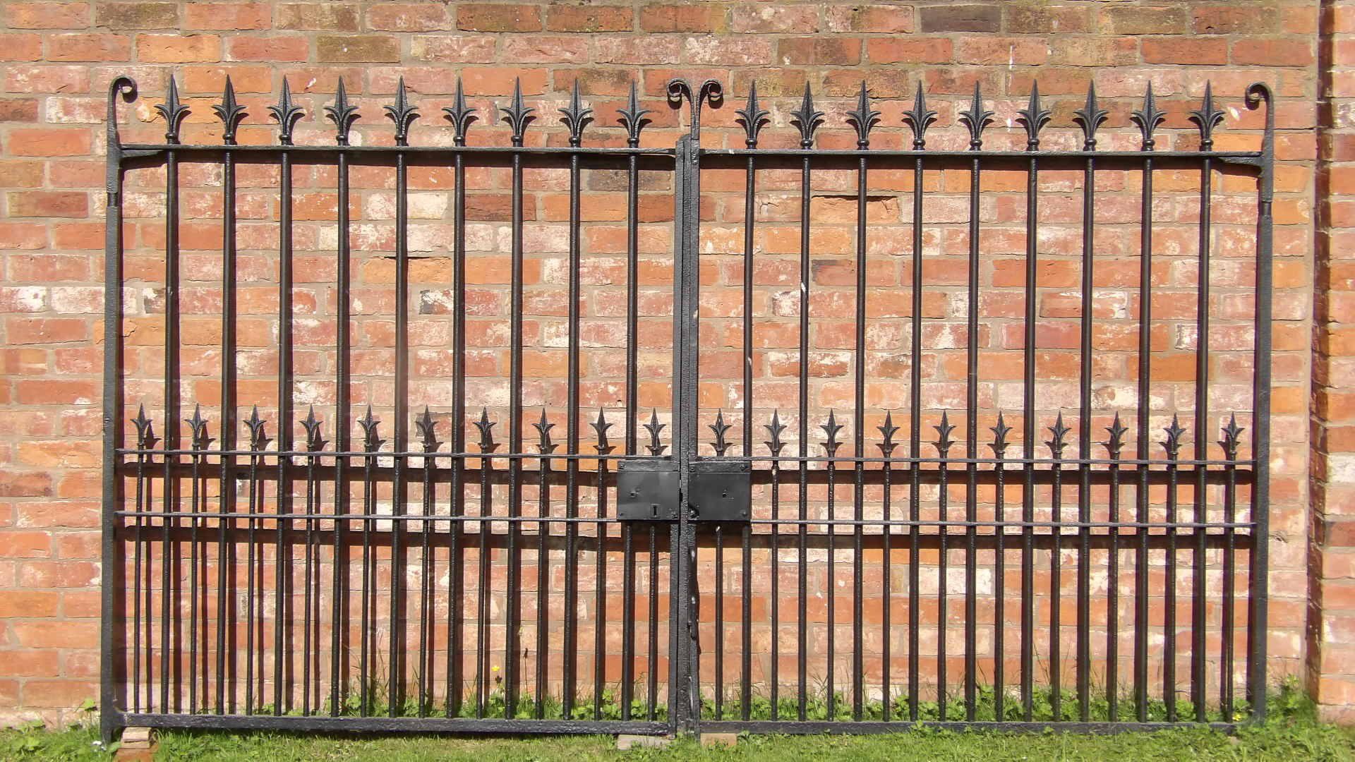 A good pair of old wrought-iron drive gates which have been recently cleaned and repainted. The design incorporates two rows of spear finials on vertical bars, providing an effective barrier for pets. These gates have the great benefit of being wide enough for modern accesses and could be adapted for automatic opening.