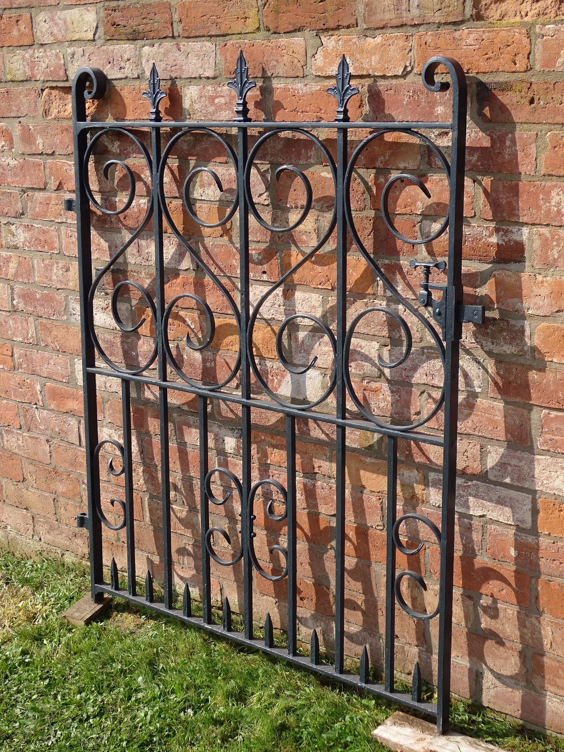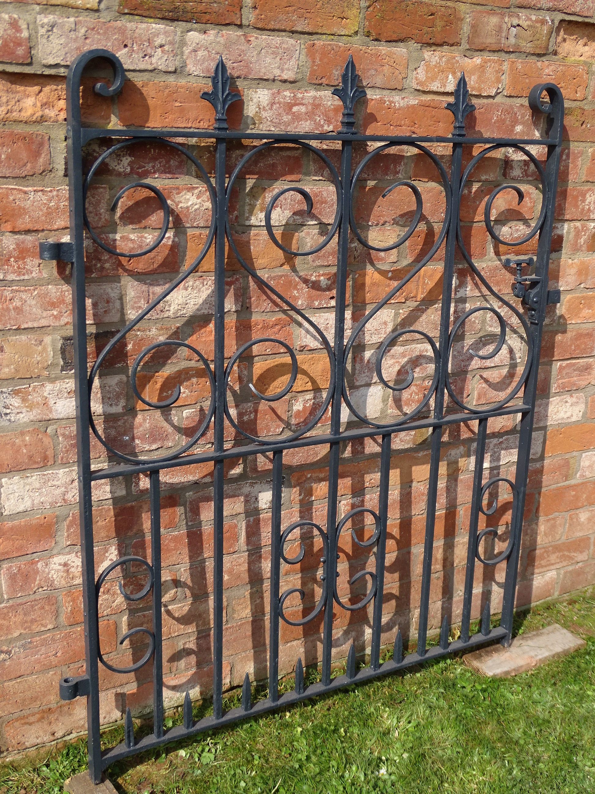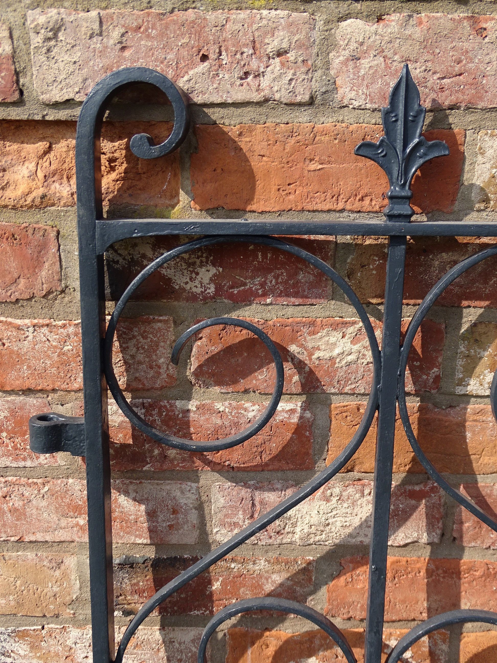 An antique garden gate well constructed from wrought-iron using traditional blacksmith skills. This gate has recently been cleaned and repainted and is ready for use.