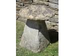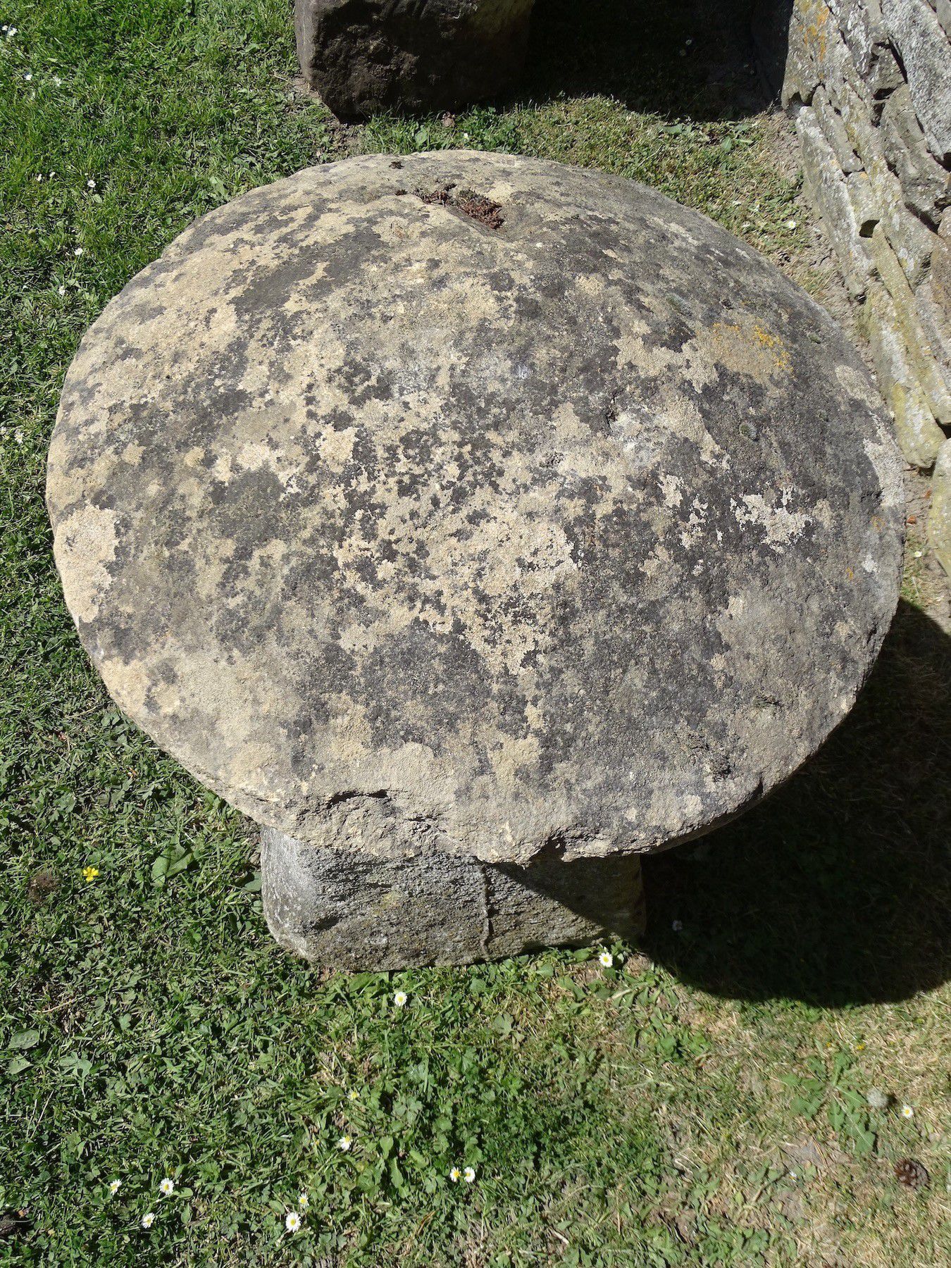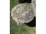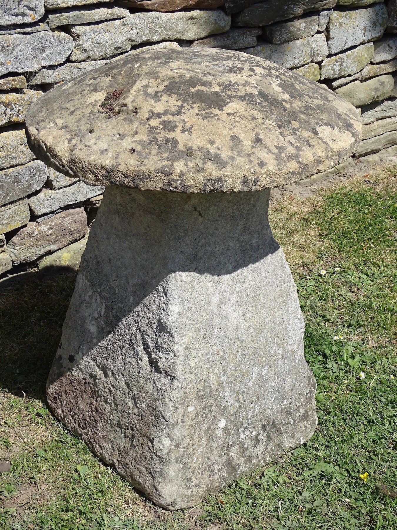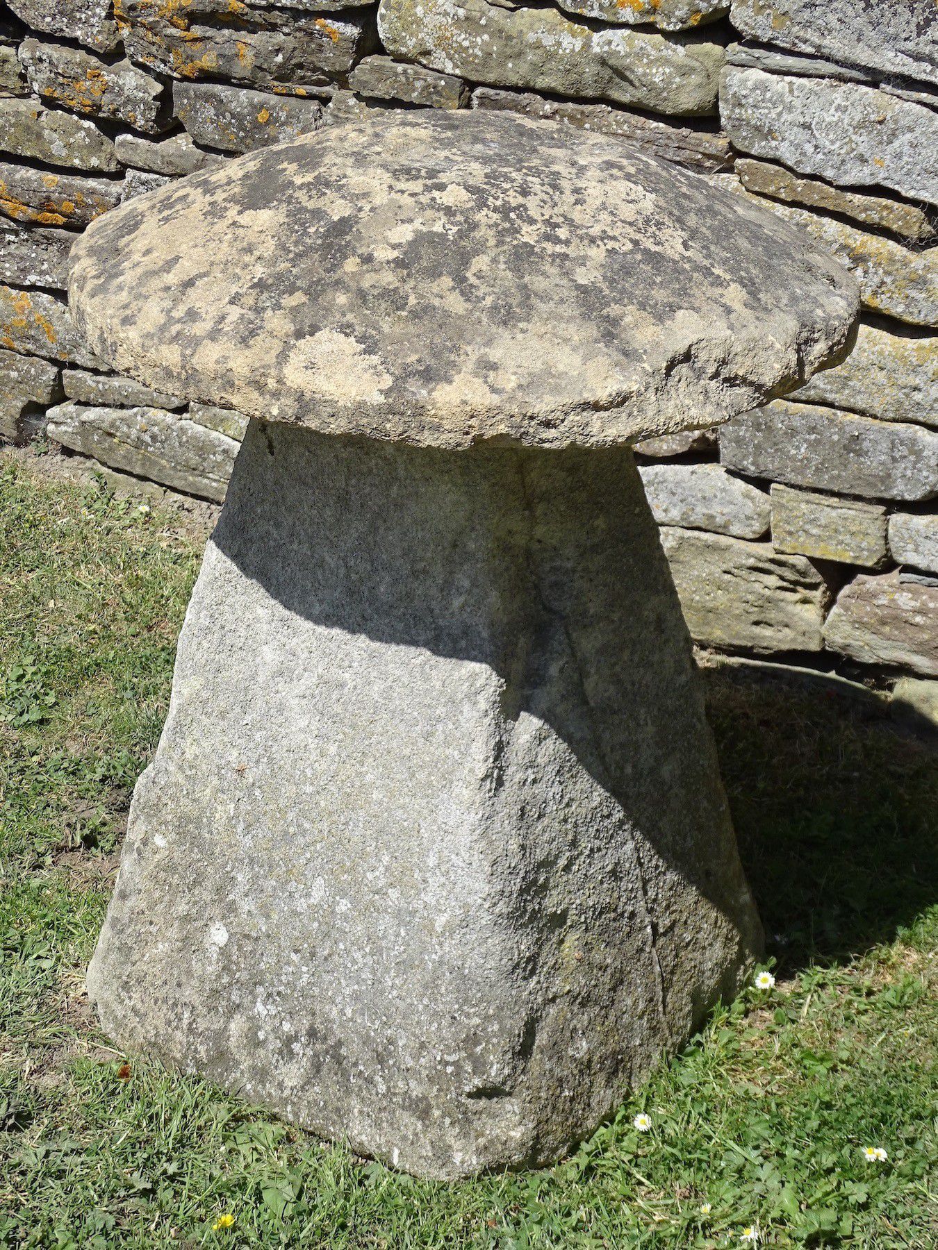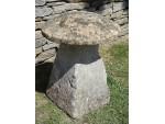 An antique limestone staddlestone, from Nottinghamshire but probably originally from southern England, the round top on a tapered square base.