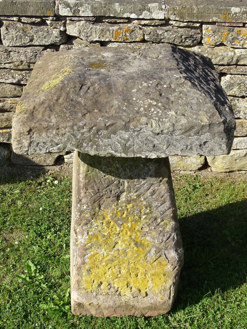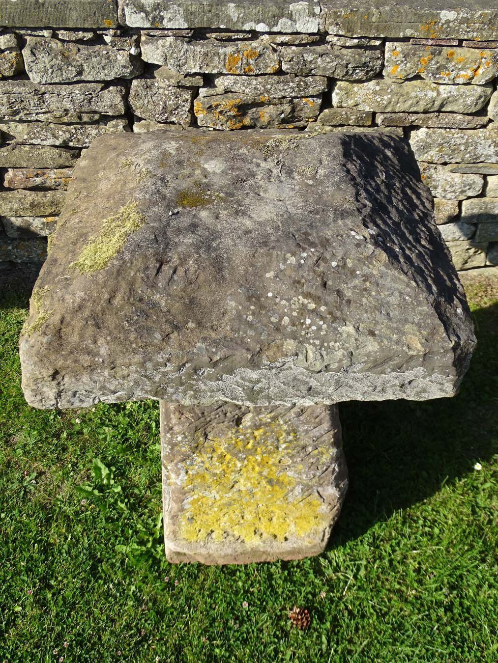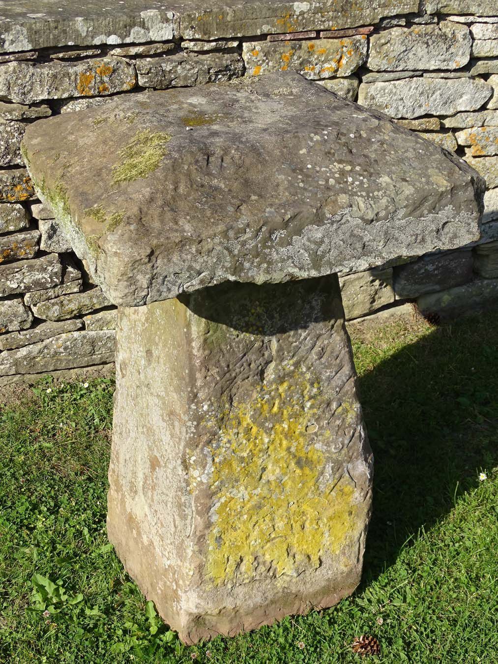 An antique sandstone staddlestone from Worcestershire, the tapered square top on a rough hewn tapered base.