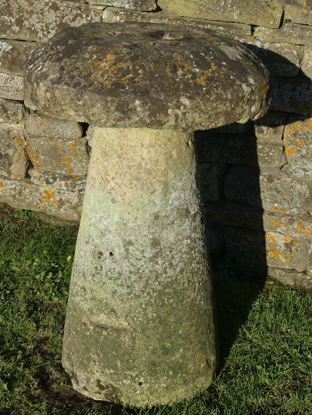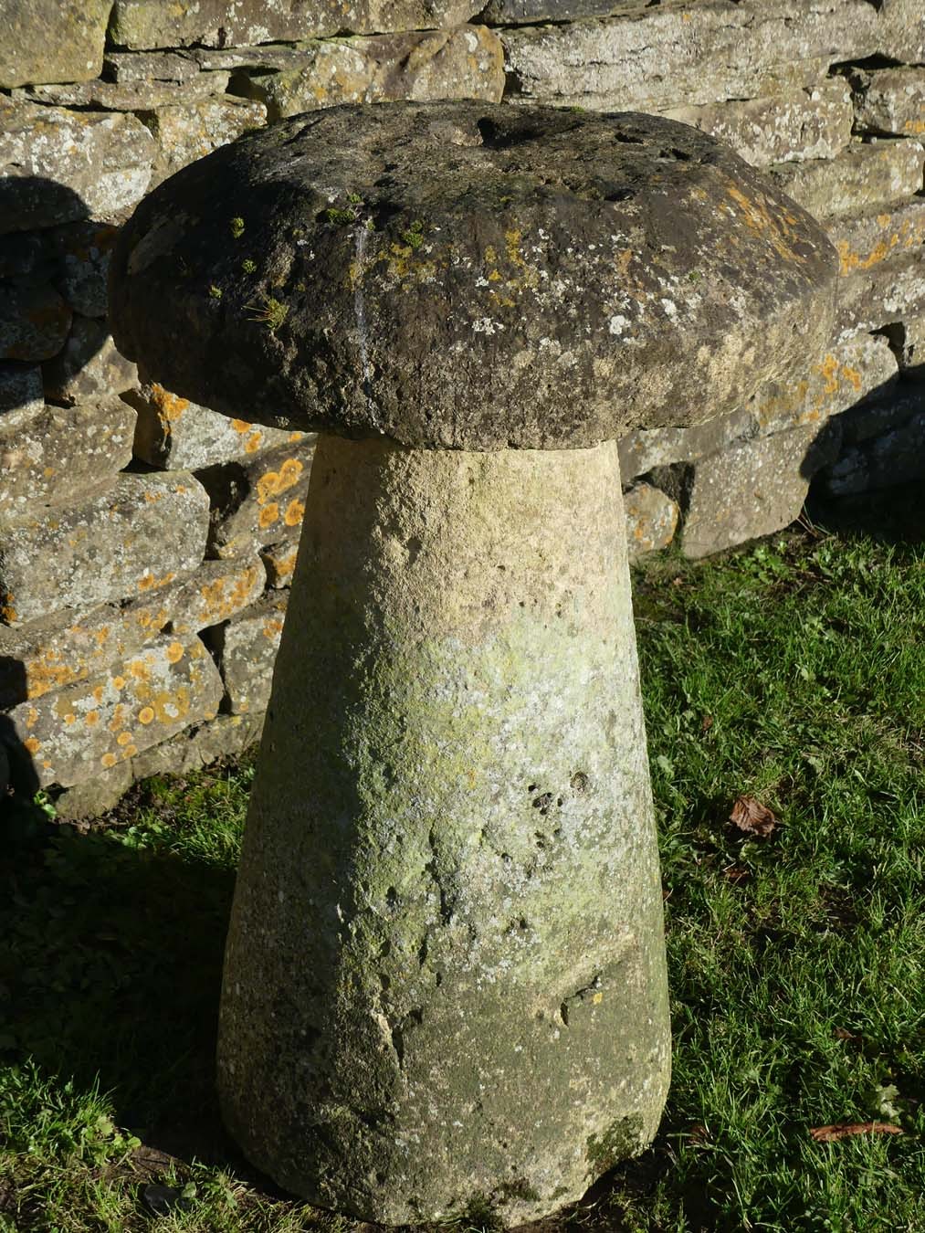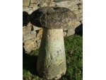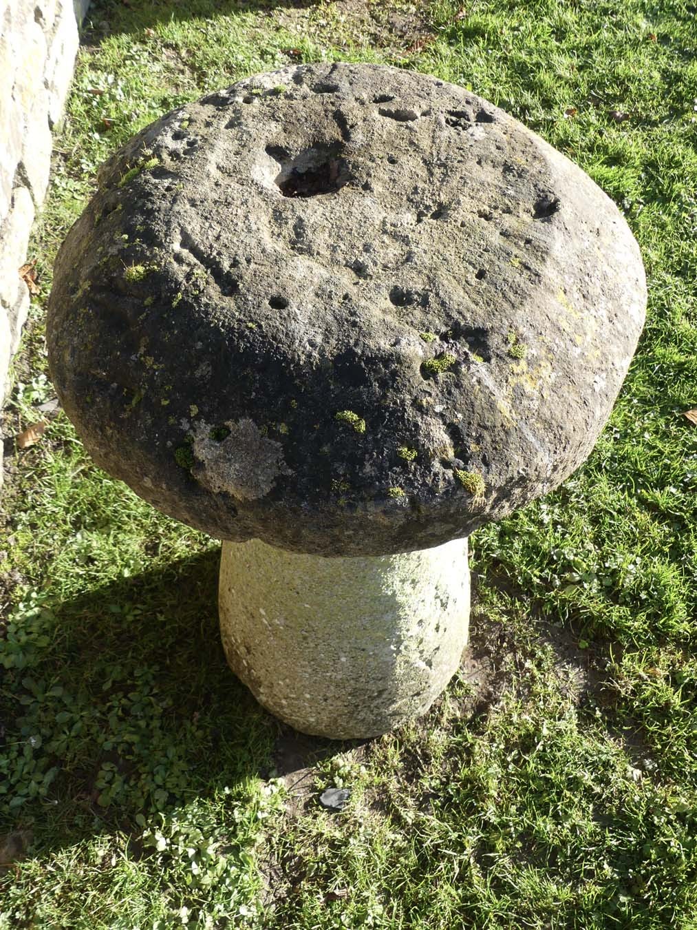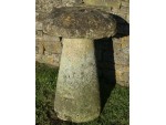 An antique limestone staddlestone from Gloucestershire, the round top on a separate tapered round base.