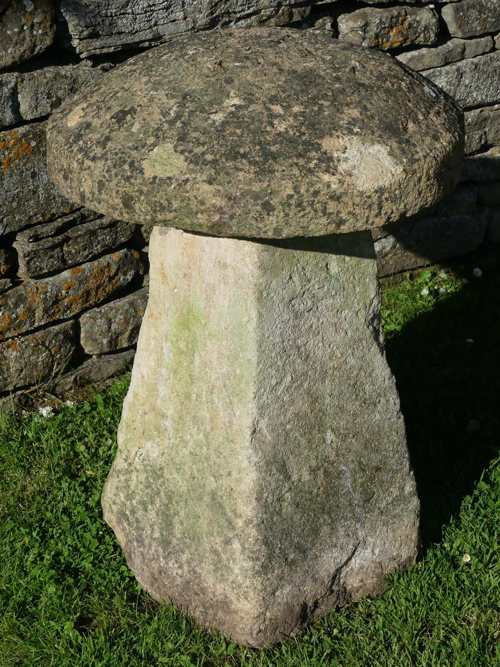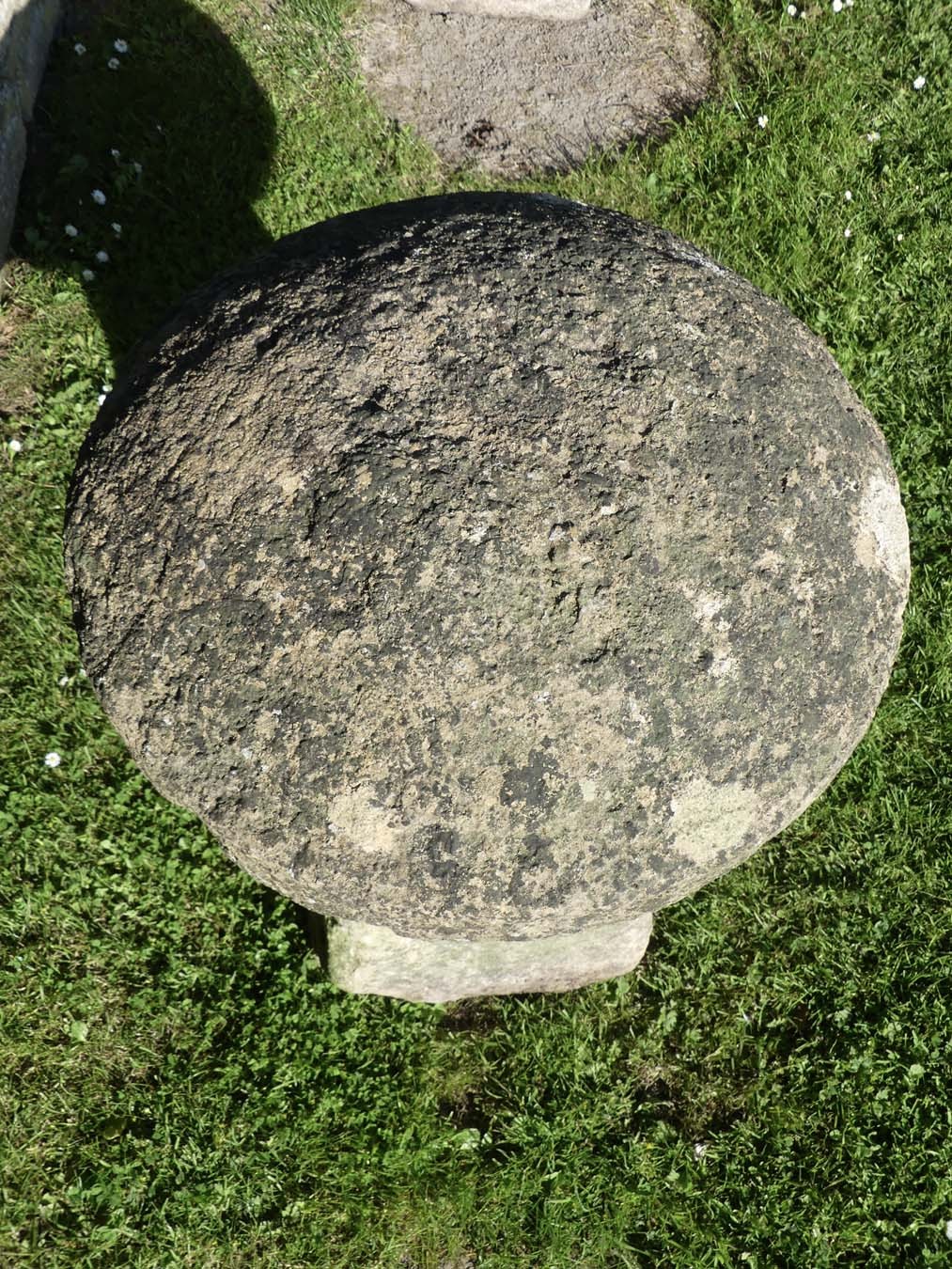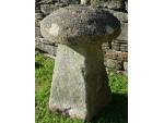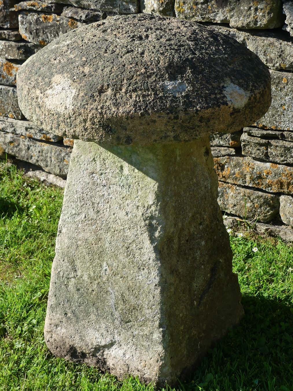 A well proportioned antique limestone staddlestone from South Worcestershire, the domed round top on a separate tapered square base.