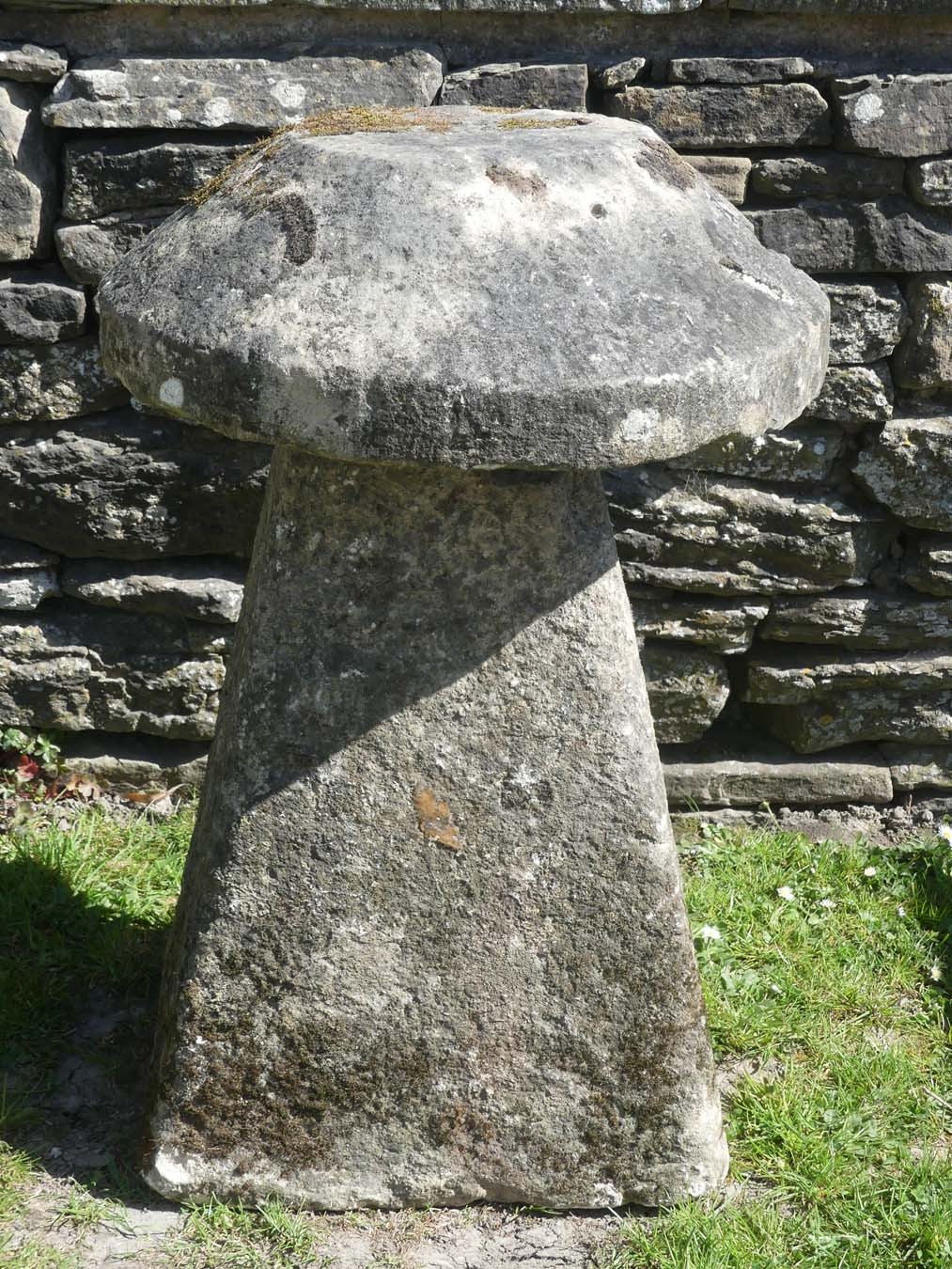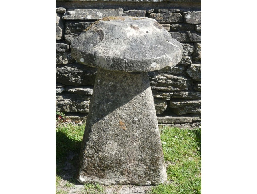 A good antique portland stone staddlestone from Dorset, the substantial round top on a separate tapered square base.