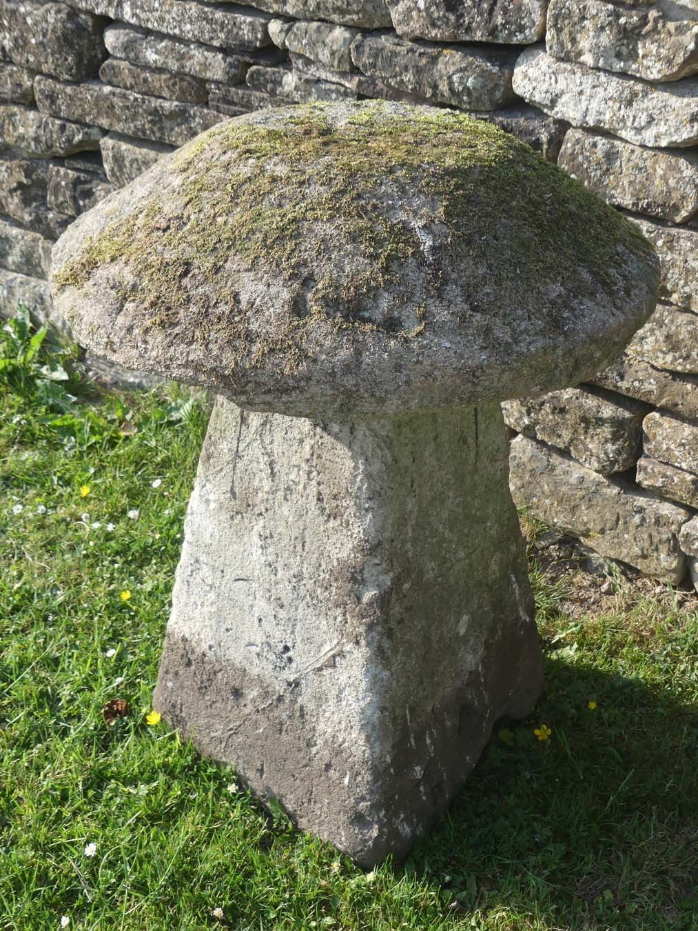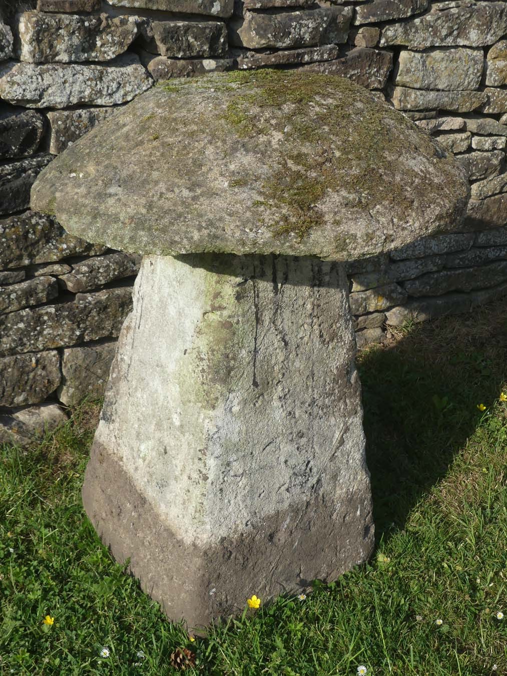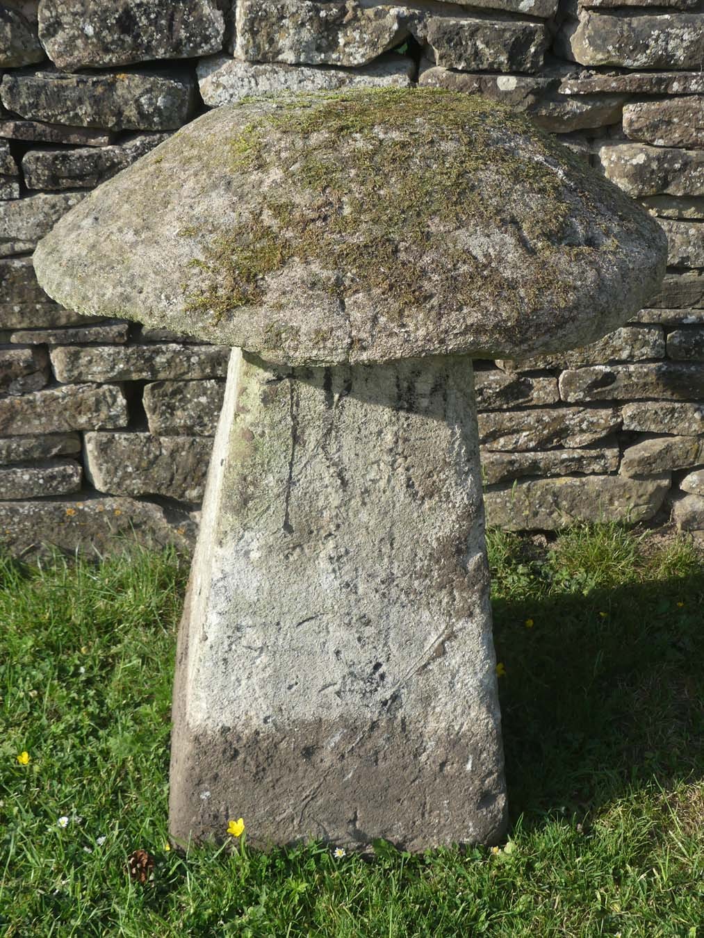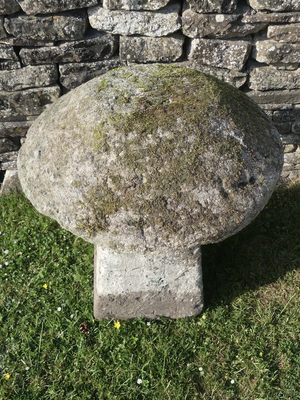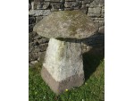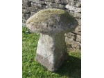 An antique limestone staddle stone from Berkshire, the domed top on a separate tapered base.