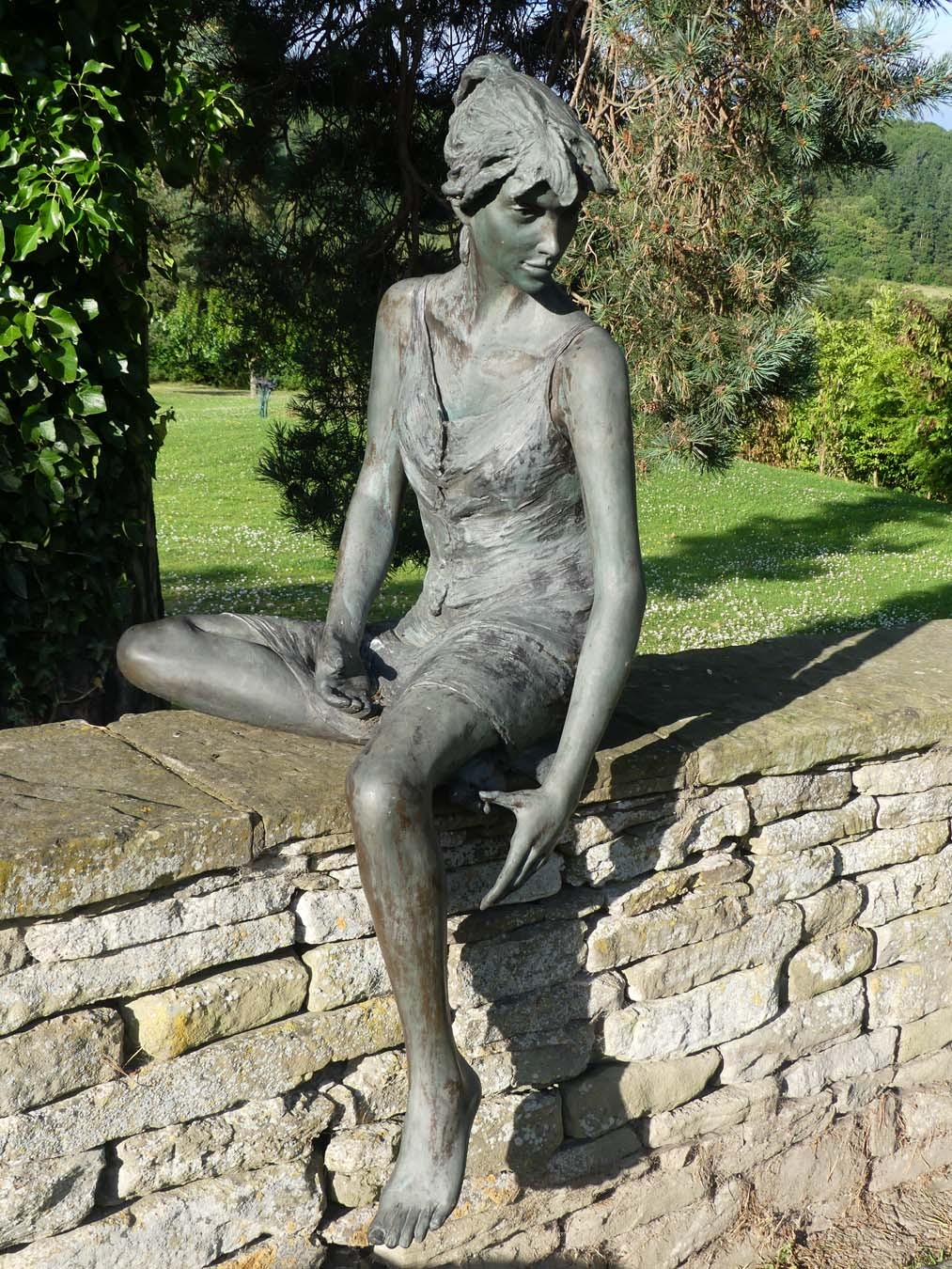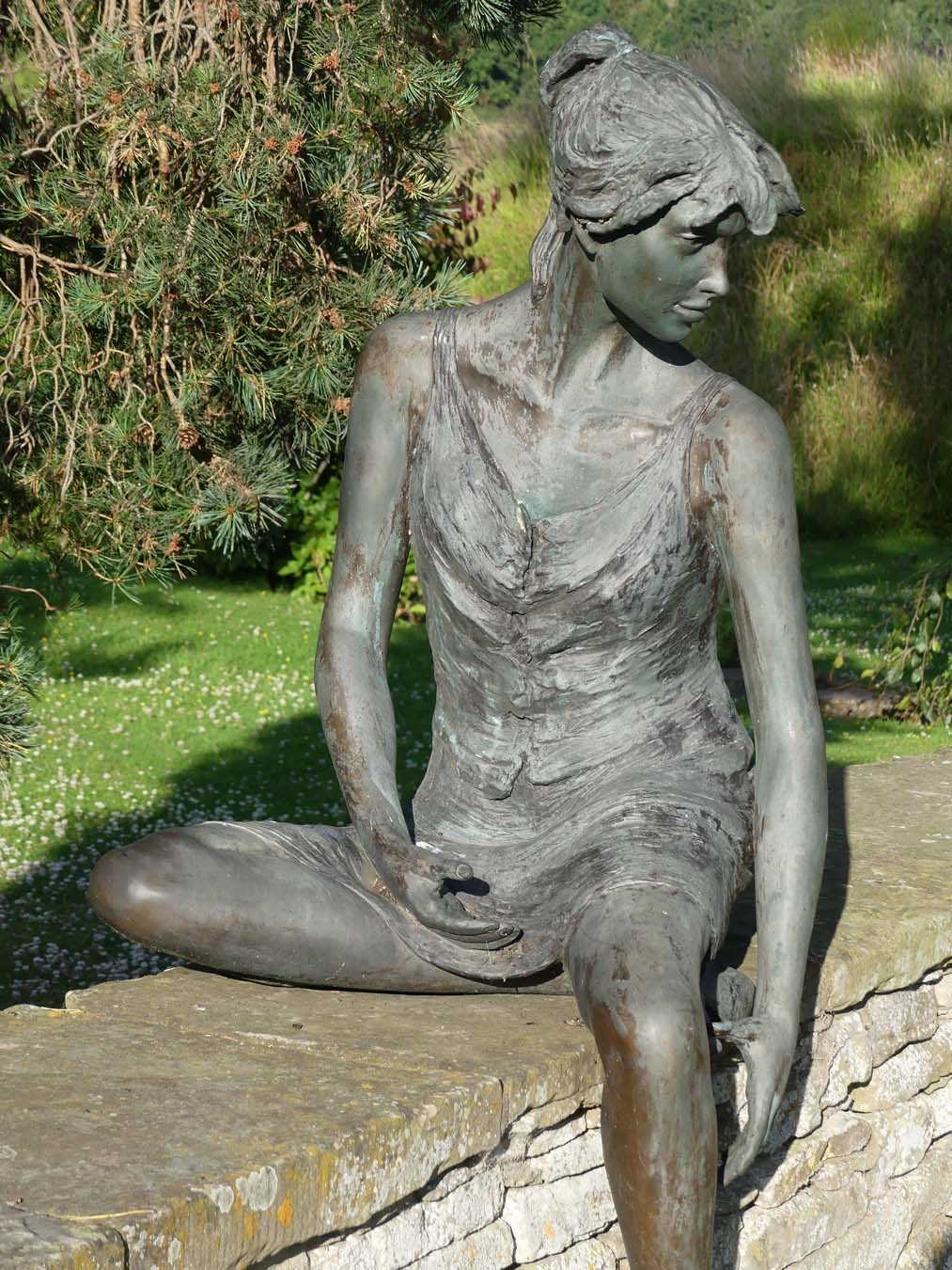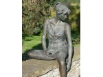 Judith Holmes Drewry (1950-2011) 'Charly'. A large bronze figure of a seated girl looking to her left, signed on the corner of her dress ' J Holmes Drewry 9/9'. This is an impressive and modern bronze figure depicting the subject in a relaxed natural pose.