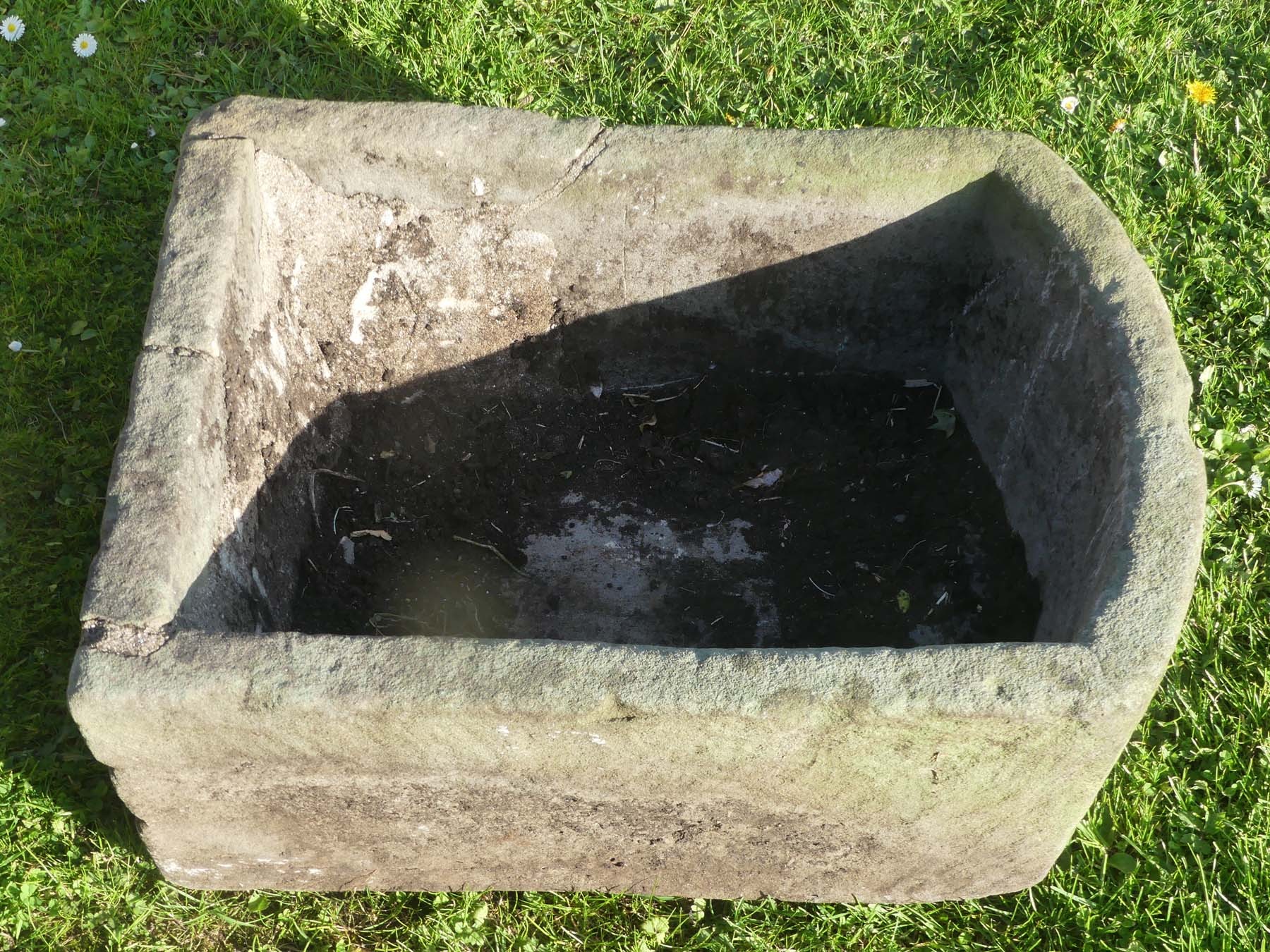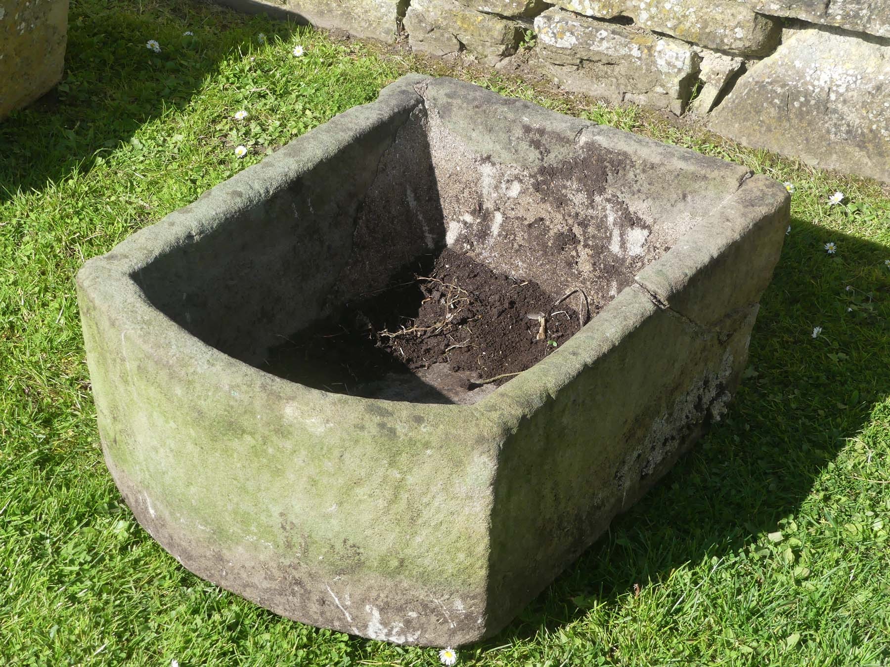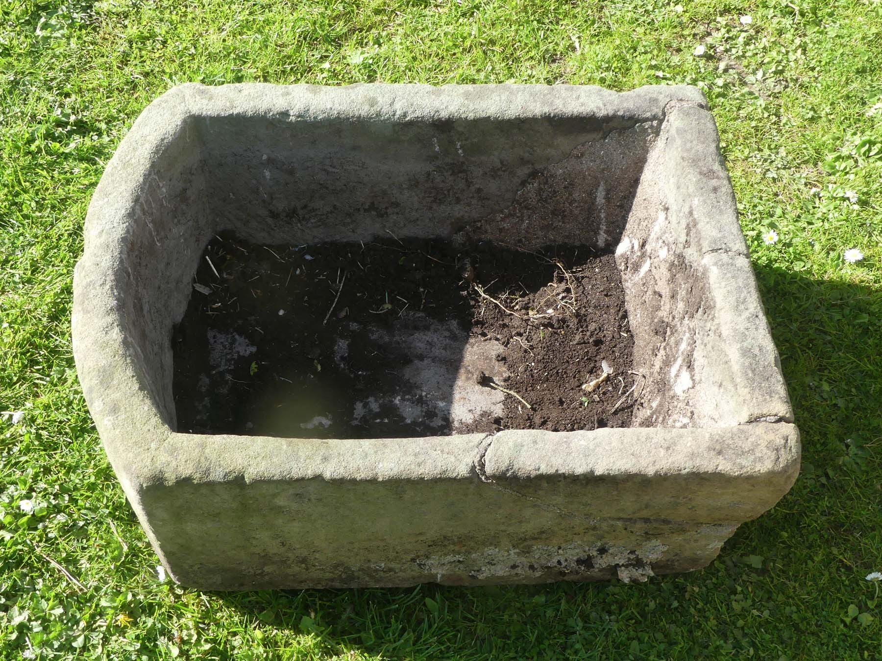 An antique sandstone pump trough from West Gloucestershire. There is an extensive old repair to the back of this trough which is reflected in the price and will be less obvious when the trough is planted. It has good internal depth for it's size.