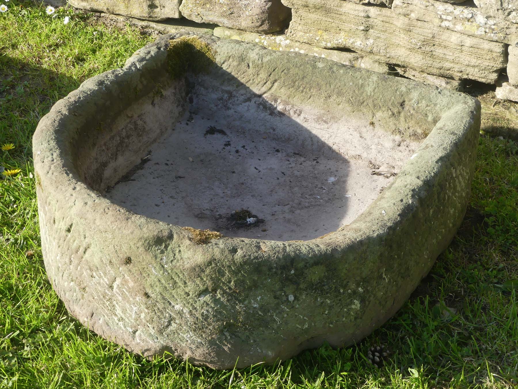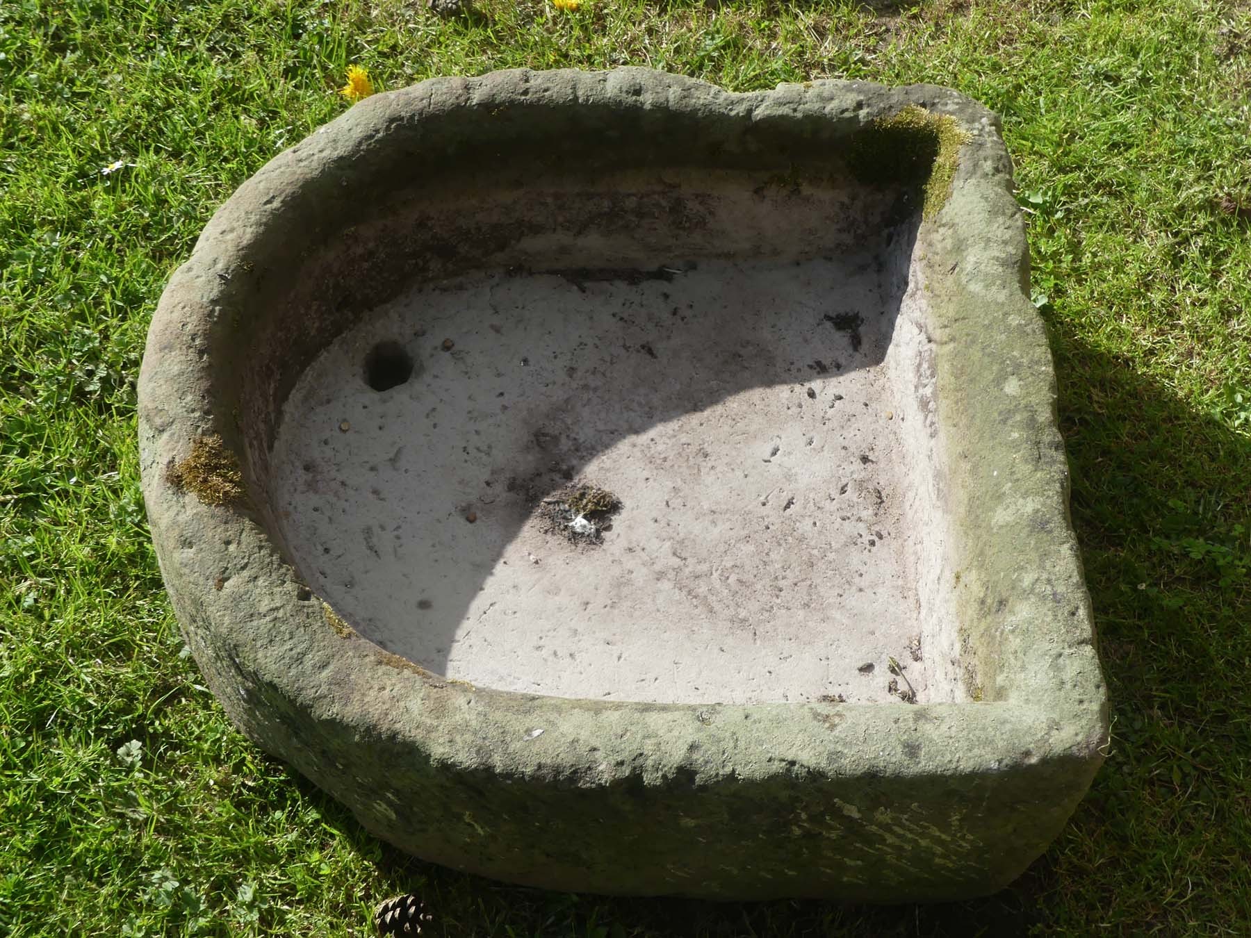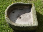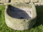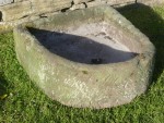 An antique bow fronted sandstone trough from North Worcestershire with an arched front and straight back. This trough is an attractive shape with lots of planting room for bulbs and alpines but not really enough planting depth for shrubs and larger plants.