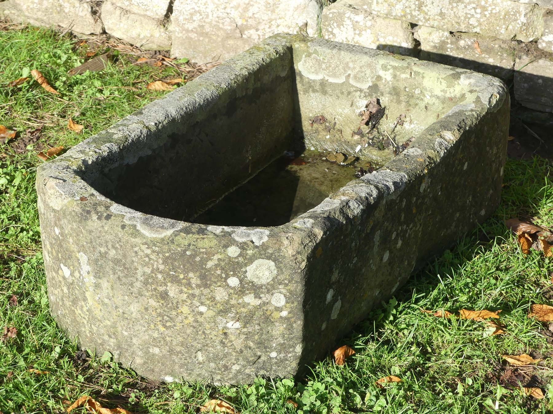 An antique sandstone pump trough from West Gloucestershire of typical rectangular form with a bowed front.