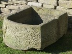 An antique bow fronted sandstone trough from Shropshire with lots of hand chiselled character. This trough is in sound condition and currently holds water up to the bottom of the notches on the sides. There do not appear to be any drainage holes and it would be a good trough to be used as part of a garden water feature.