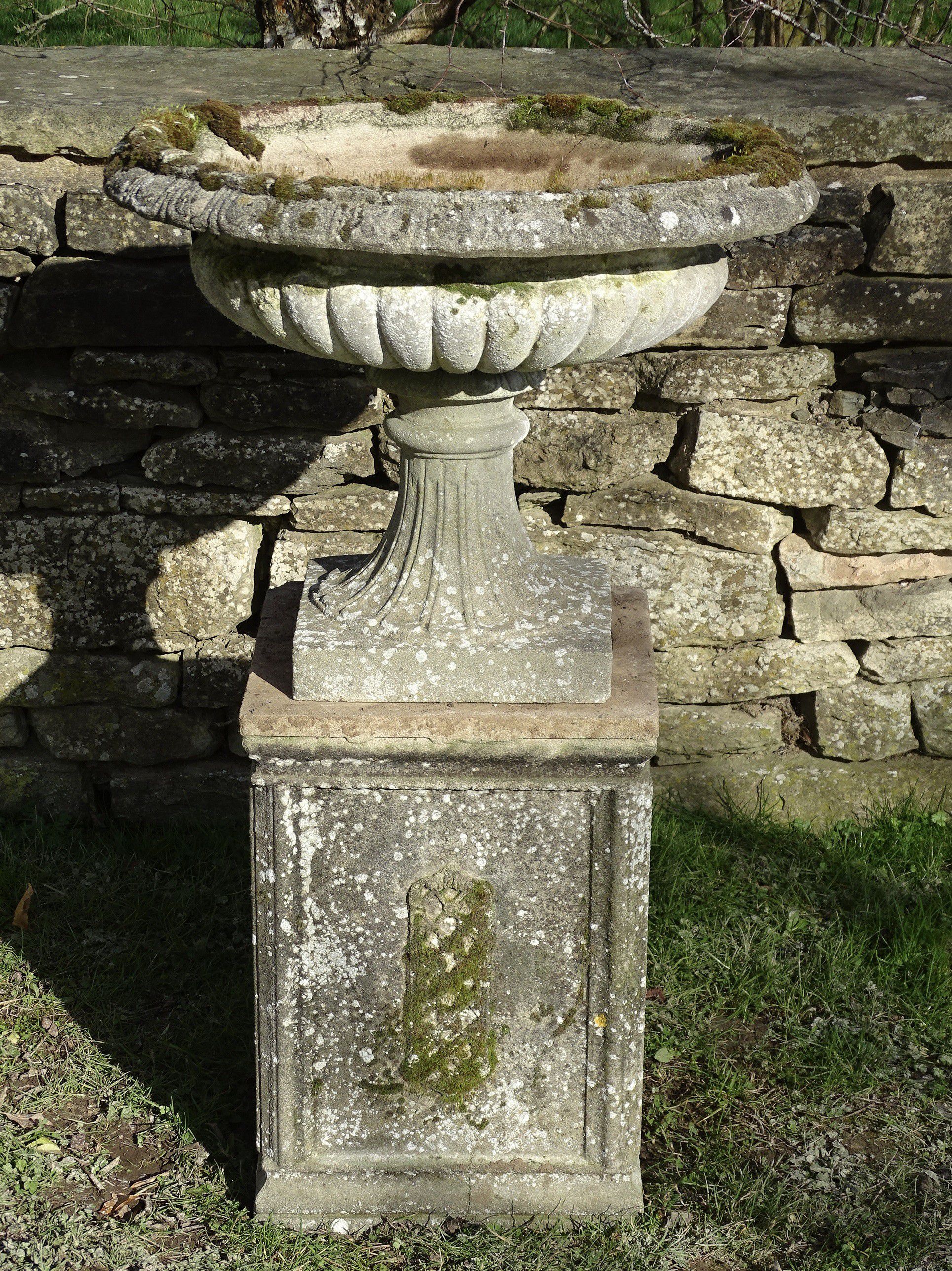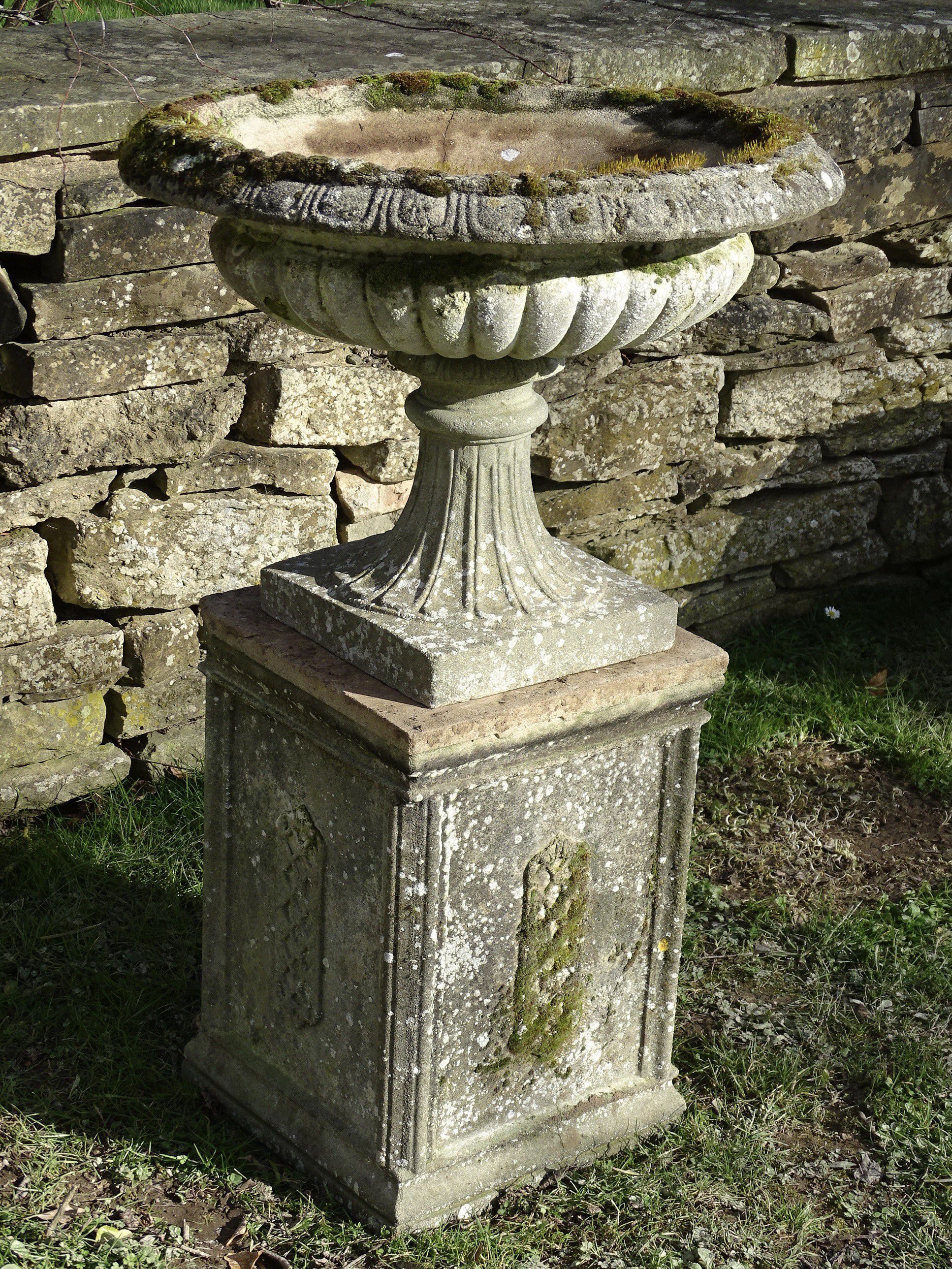 Weathered Garden Urn on Base Weathered Garden Urn on Base Weathered Garden Urn on Base